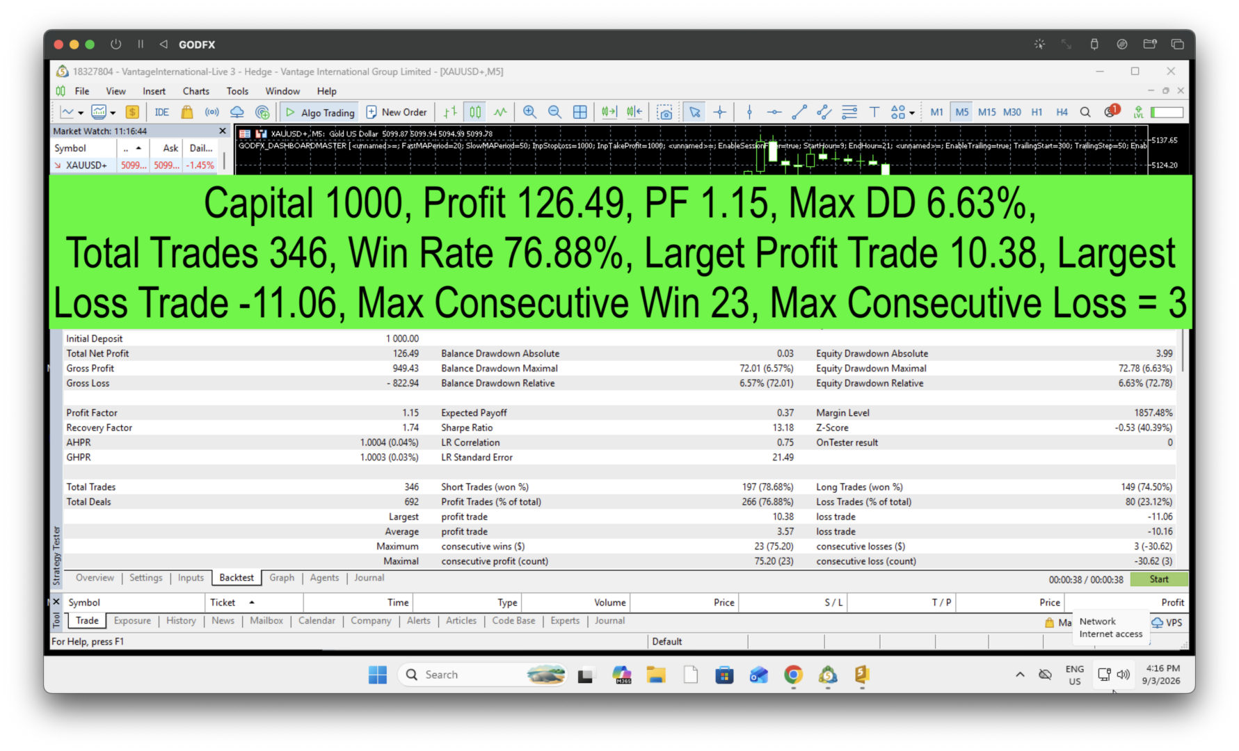 🧪 Test & Einsatz Warnung Bevor Sie GODFX BB auf einem Live-Konto anwenden: