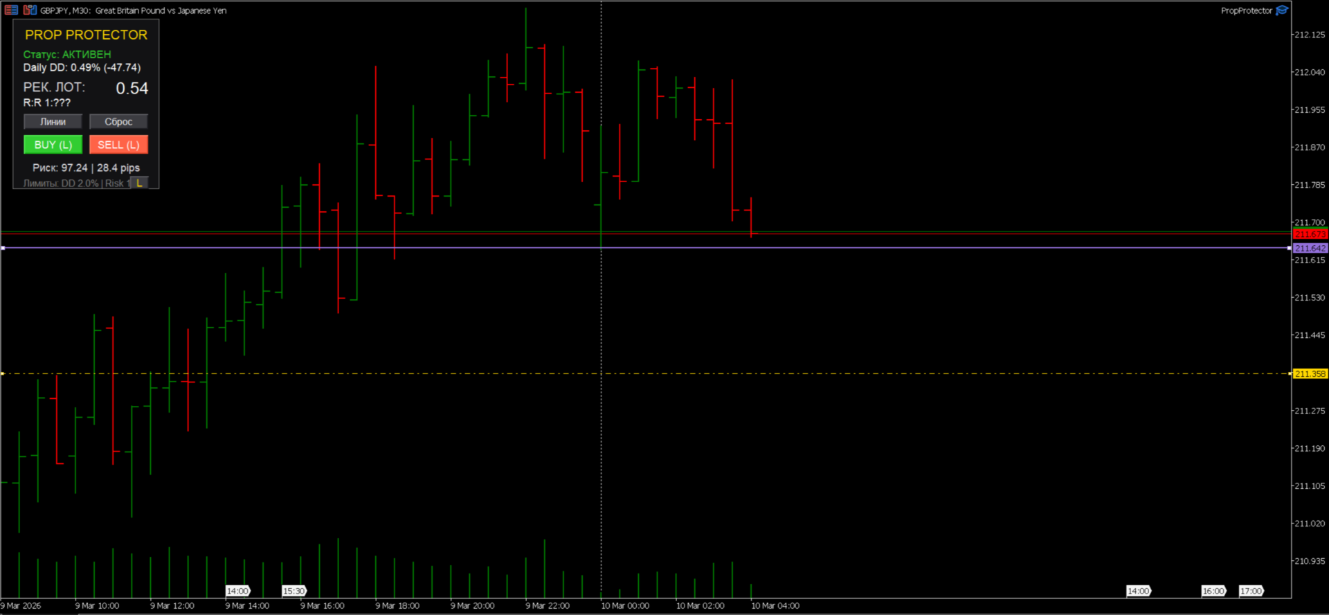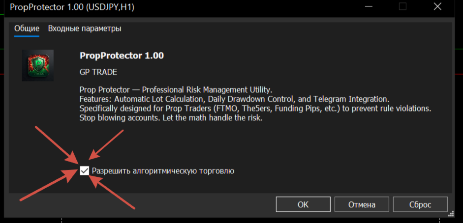 Ist es mit den Regeln von Prop Firm kompatibel? Ja, das Tool ist speziell so konfiguriert, dass es bei der Einhaltung der täglichen Drawdown-Limits hilft, die in modernen Prop-Trading-Bewertungen häufig zu finden sind.