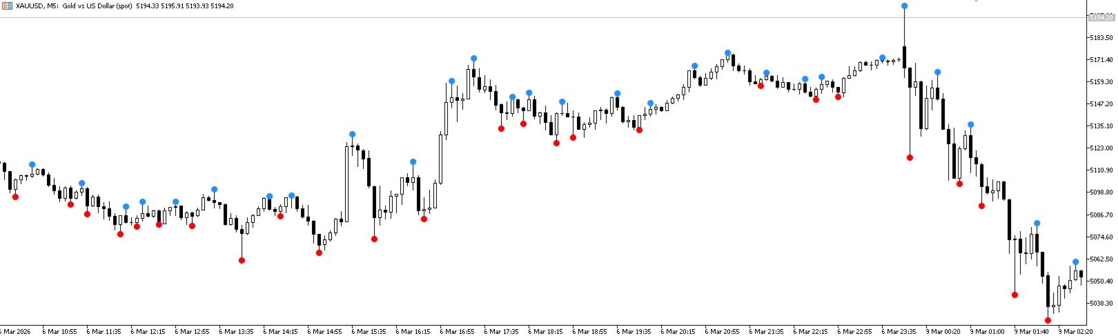 Zweck: Identifiziert Kontrollpunkte (CP) - lokale Extremwerte (Fraktale) auf dem Diagramm. Obere CPs sind lokale Hochs, untere CPs sind lokale Tiefs. Sie werden auf dem Diagramm als Rautenmarkierungen angezeigt.