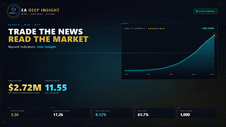Deep Insight ist ein modernes Handelssystem, das auf einem zentralen Prinzip basiert: Marktbewegungen durch Echtzeit-News, Stimmungsanalyse und adaptive Trade-Verwaltung besser einzuordnen.