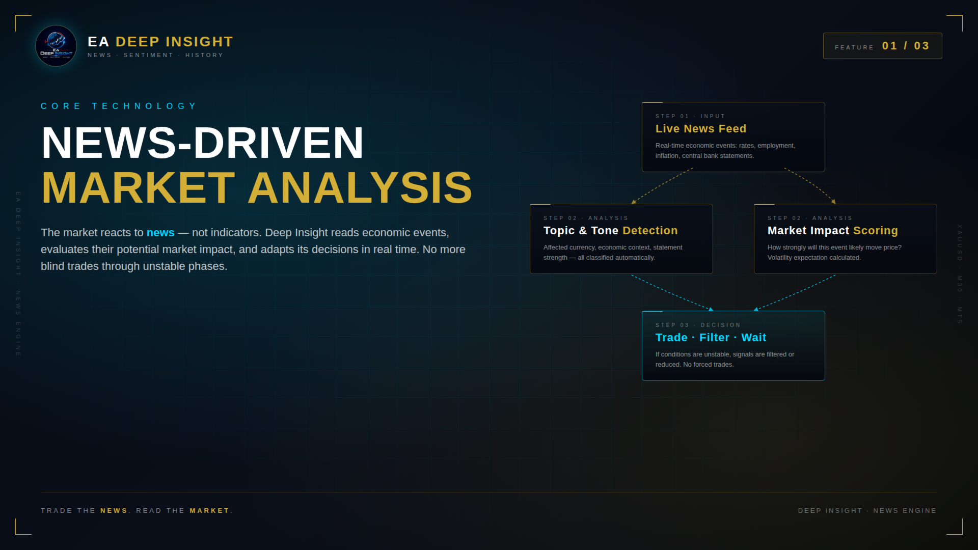 Die Hauptlogik von EA Deep Insight basiert auf der Interpretation aktueller Nachrichten. Das System bewertet das Marktumfeld anhand von News, wirtschaftlichen Ereignissen und der allgemeinen Marktstimmung.