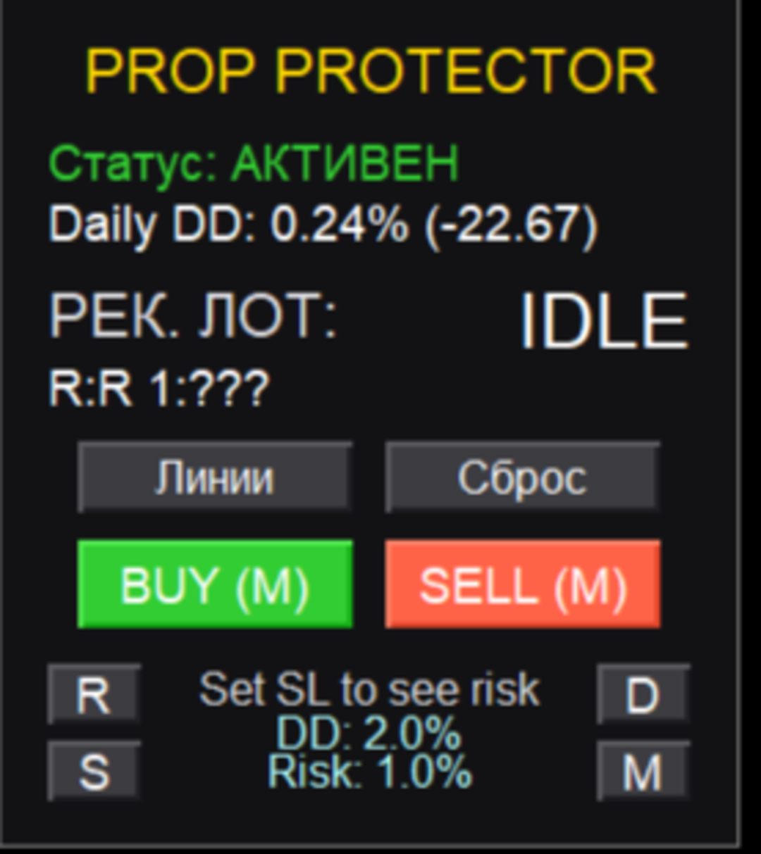 Prop Protector ist ein leistungsstarker Handelsassistent, der entwickelt wurde, um das Hauptproblem von Händlern zu lösen: die Aufrechterhaltung der Disziplin und das Risikomanagement. Wenn Sie mit Eigenhandelsfirmen arbeiten oder einfach nur Ihren Handelsplan strikt einhalten wollen, wird dieses Tool zu Ihrem unverzichtbaren Assistenten. Es übernimmt die Routineberechnungen und die Überwachung, so dass Sie sich auf die Marktanalyse konzentrieren können.