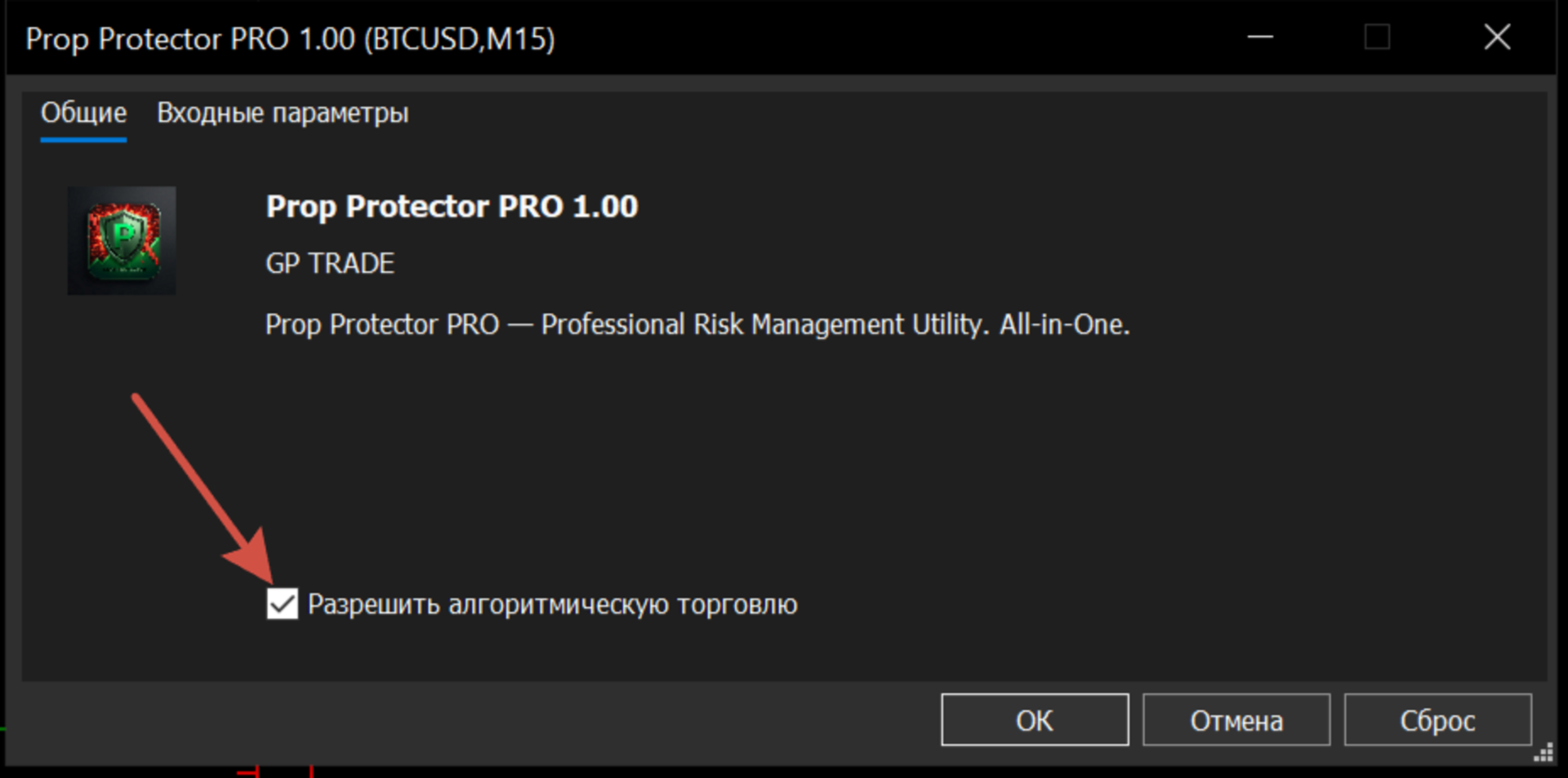 1) Um sicherzustellen, dass der Bot korrekt funktioniert, stellen Sie sicher, dass die Option "Algorithmischen Handel zulassen" in der Hauptsymbolleiste aktiviert ist, wenn Sie den Bot zum ersten Mal starten.