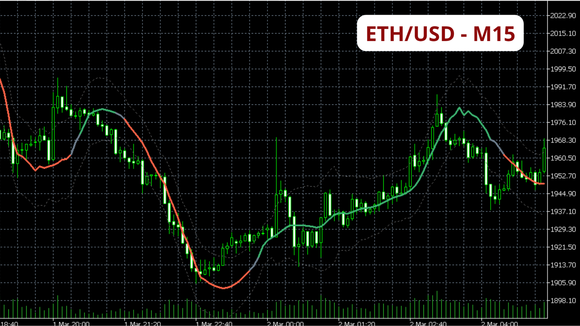 Visuelle Sicherheitszonen: Die gepunkteten Kontextbänder fungieren als dynamische Unterstützung und Widerstand. Sie zeigen Ihnen genau an, wo der Markt überdehnt ist und wahrscheinlich umkehren wird.