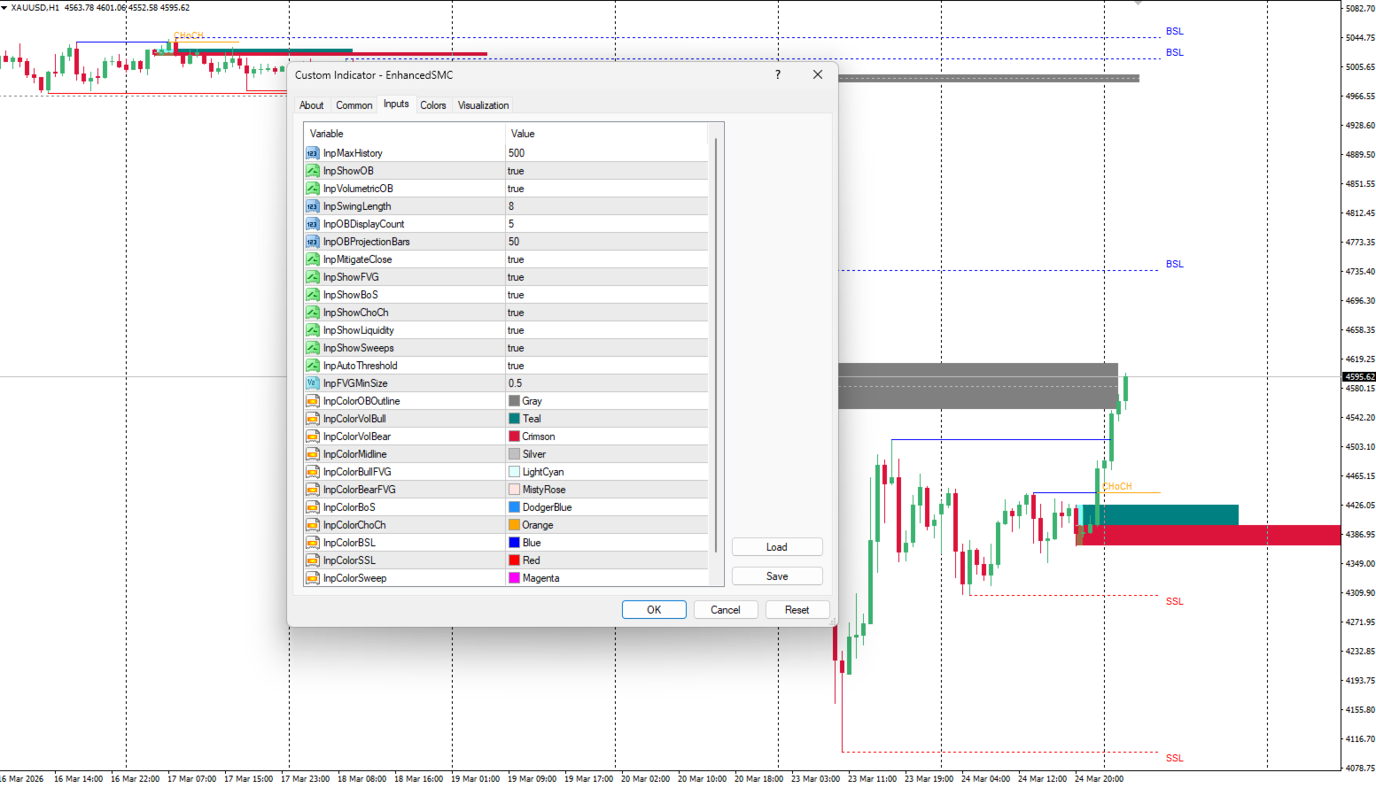 Intelligente Mitigationslogik:Aktualisiert automatisch den Status von Orderblöcken und FVGs, wenn der Preis sie ausgleicht (füllt), und sorgt so für ein sauberes Diagramm.