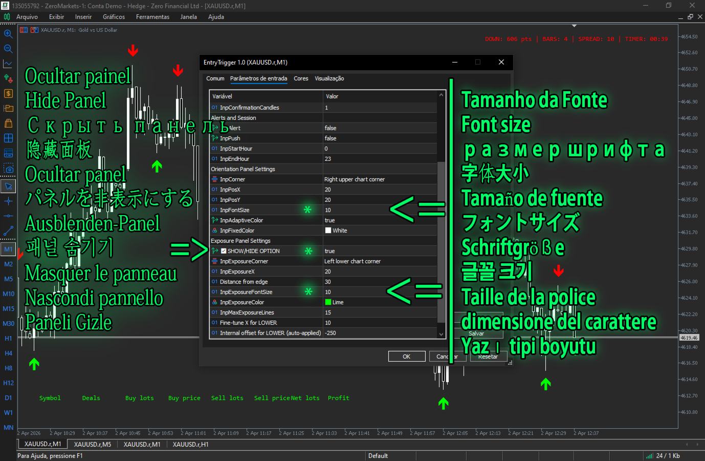 * Weitere Anpassungsmöglichkeiten: Anpassbare Schriftgröße und Anzahl der Kerzen, die nach dem Auftreten des Triggers einen Alarm auslösen. Die Frequenz des Einstiegssignals ist auf drei Werte eingestellt, die Sie individuell anpassen können.
