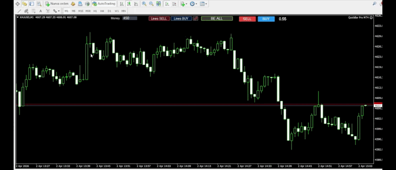 QuickBar Pro MT4 ist ein Risikomanagement- und Orderausführungspanel, das für Trader entwickelt wurde, die Geschwindigkeit, Präzision und ein übersichtliches Chart benötigen. Im Gegensatz zu herkömmlichen Panels, die den Bildschirm überladen, integriert sich QuickBar Pro als kompakte einzeilige Werkzeugleiste oben im Chart und hält stets die volle Chart-Ansicht frei.
