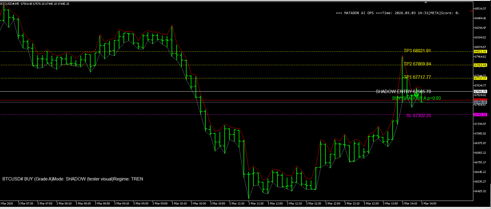Diese Lösung wurde speziell für BTCUSD / BTCUSD# entwickelt und funktioniert nur auf dem M5-Zeitrahmen. Sie soll Händlern helfen, kurzfristige Kursbewegungen disziplinierter zu lesen, indem sie Trendlogik, Marktbedingungsfilter, Momentum-Timing, Spread-Schutz, Signalqualität und strukturbasierte Auswertung in einem professionellen Signal-Workflow kombiniert.