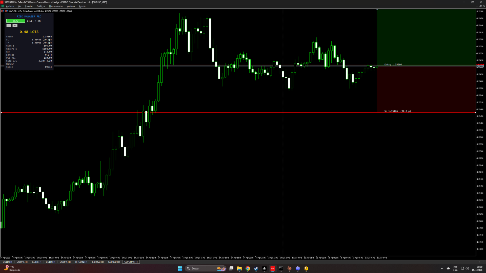 - Lesen Sie die Lotgröße aus dem Panel ab und platzieren Sie Ihren Handel manuell.