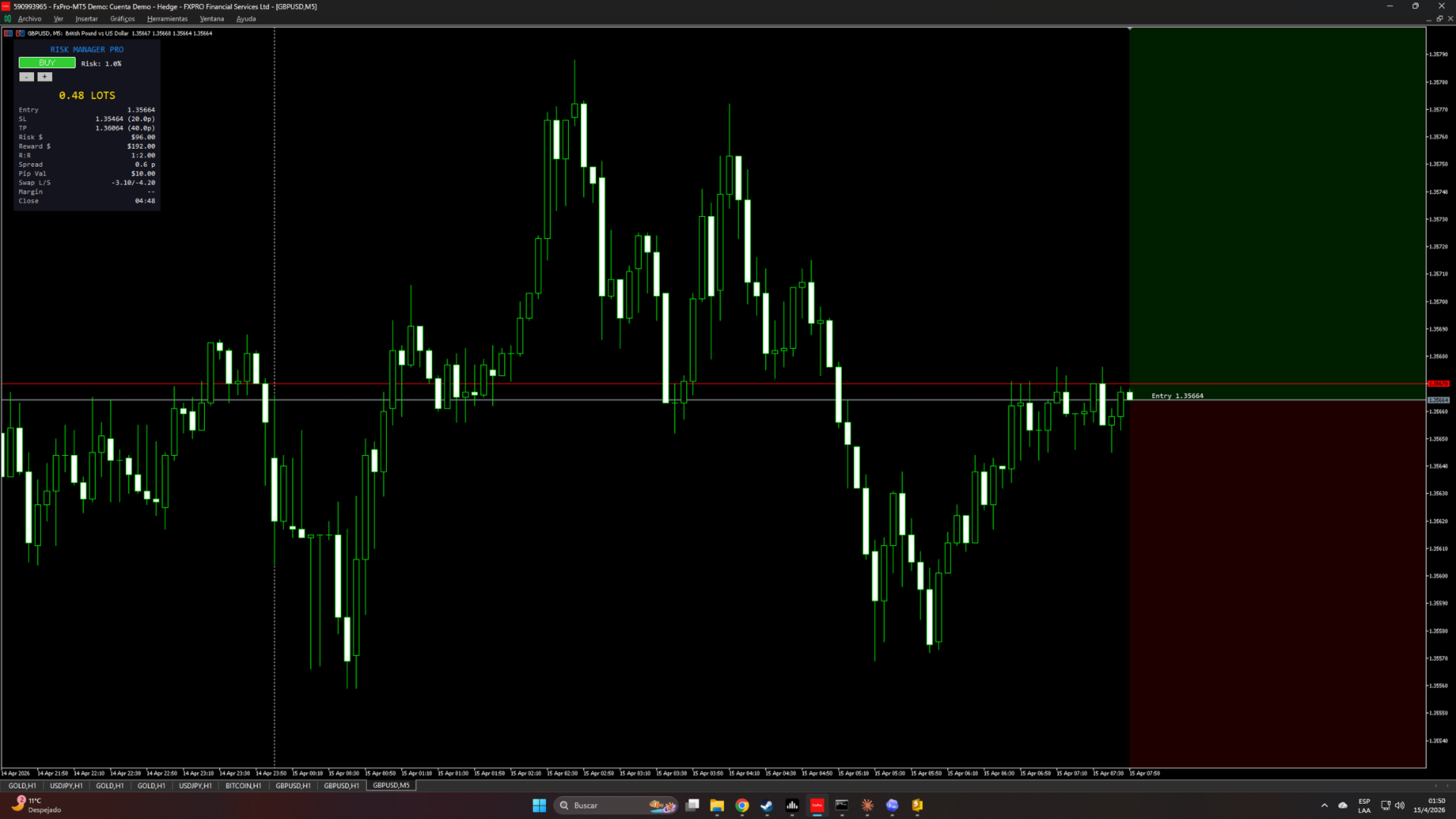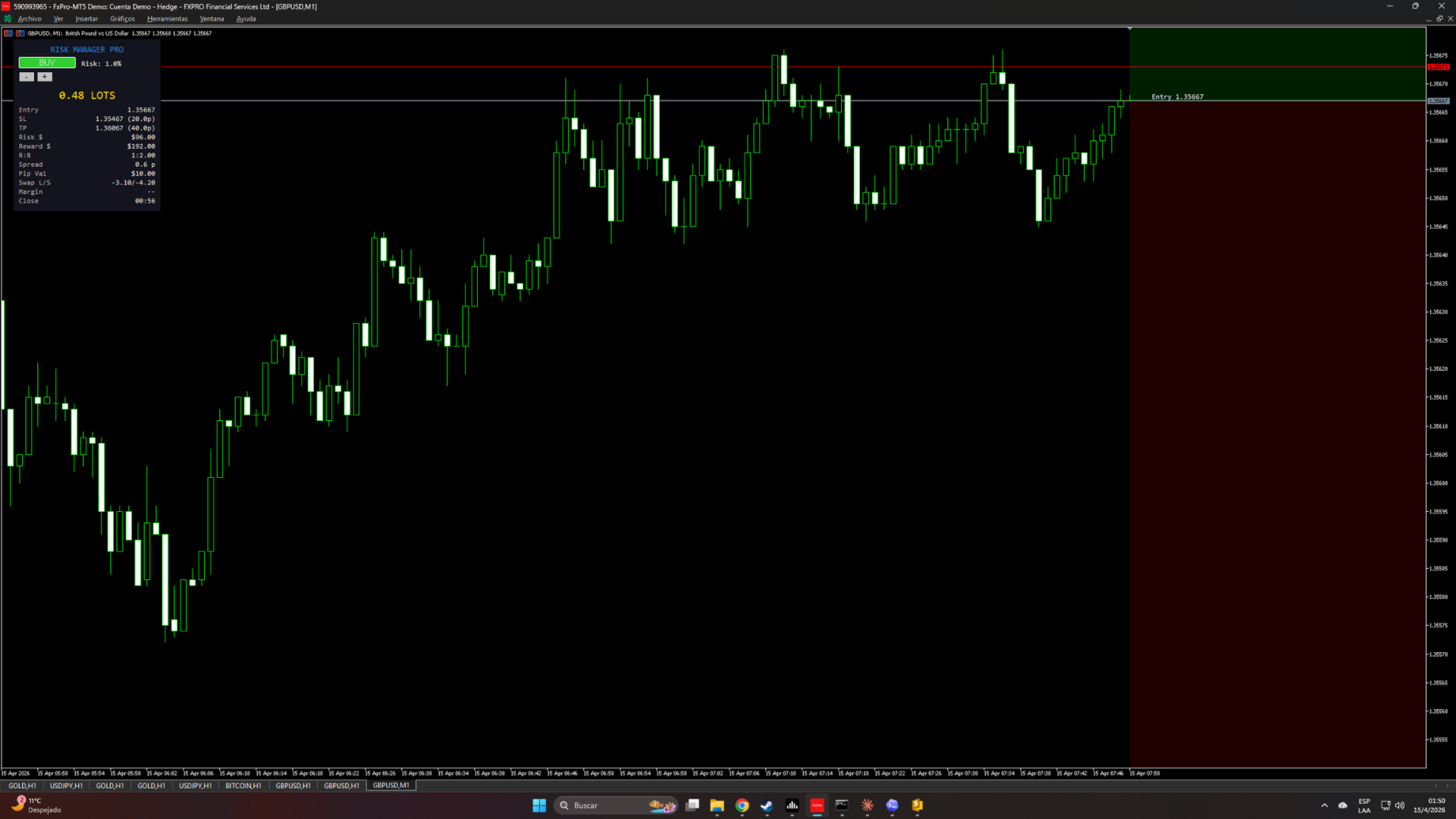 RiskManager PRO ist ein professionelles Risikomanagement-Panel, das sich in Ihrem Chart befindet. Legen Sie Ihr Risiko als Prozentsatz des Saldos, des Eigenkapitals oder als festen Dollarbetrag fest. Ziehen Sie die Stop-Loss-Linie auf dem Chart, und das Panel berechnet sofort die optimale Losgröße, das Risiko in Dollar, den Gewinn in Dollar und das R:R-Verhältnis neu. Keine manuellen Berechnungen mehr, keine Fehler mehr bei der Größenbestimmung.