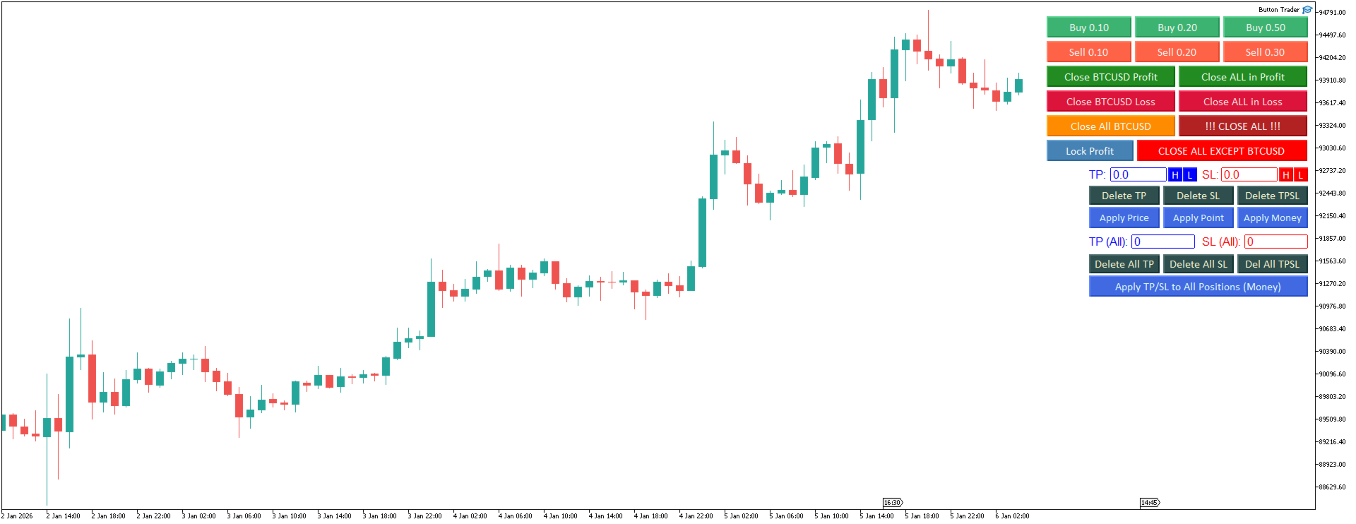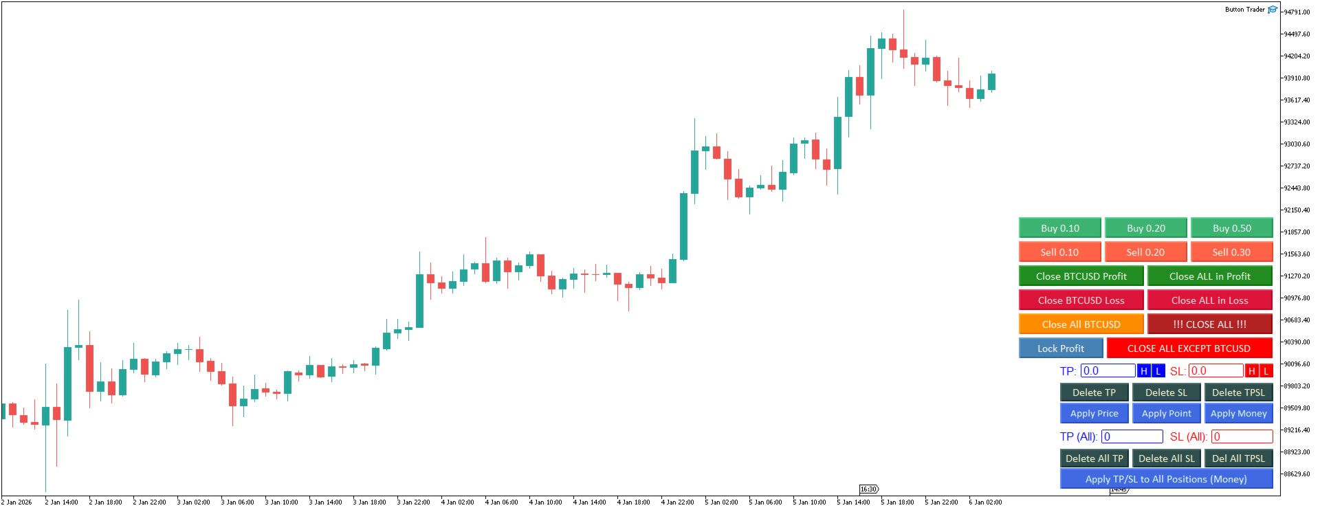 FastBTN ist ein professionelles Handelsmanagement-Panel für MetaTrader 5, das den manuellen und halbmanuellen Handel durch schnelle On-Chart-Ausführung rationalisiert. Anstatt durch mehrere Menüs zu navigieren, zentralisiert FastBTN Ihren Trading-Workflow in intuitiven On-Chart-Buttons, die es Ihnen ermöglichen, auf Marktbewegungen mit Präzision zu reagieren .