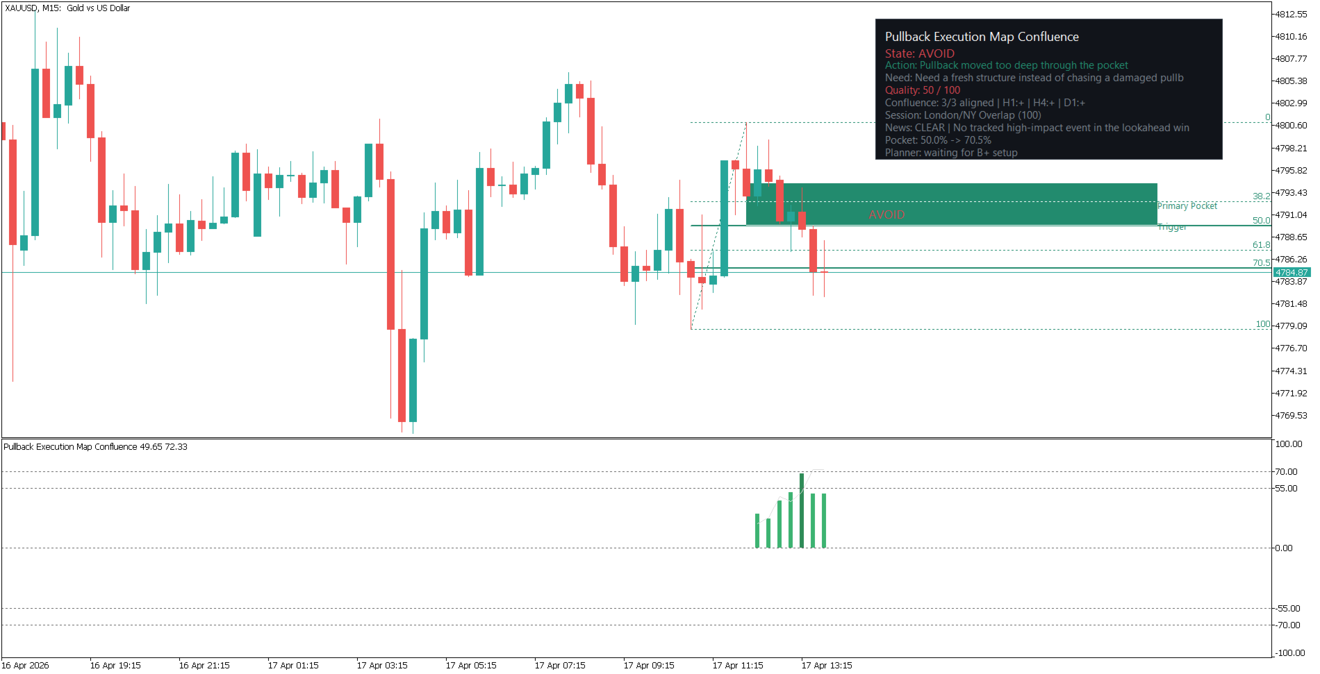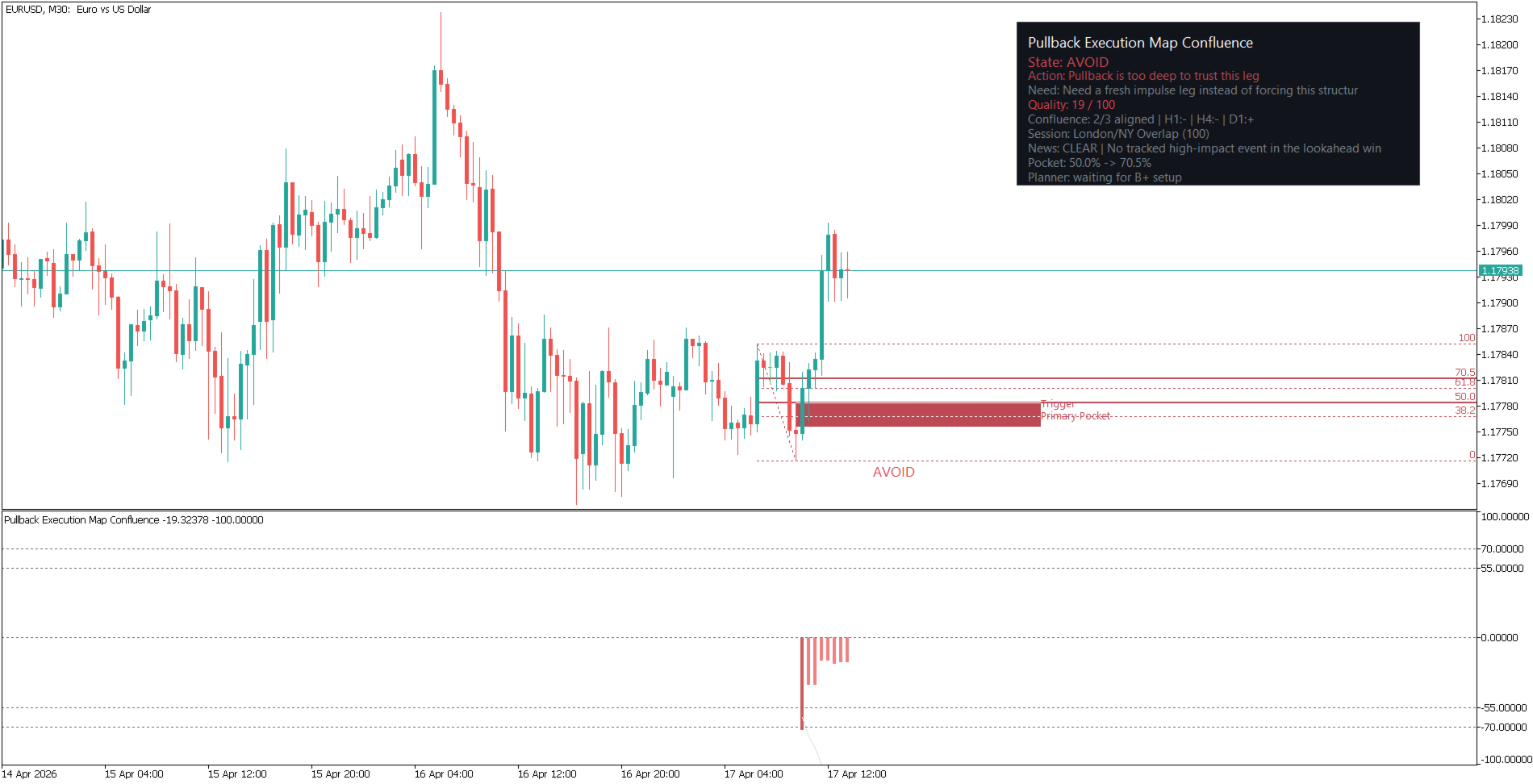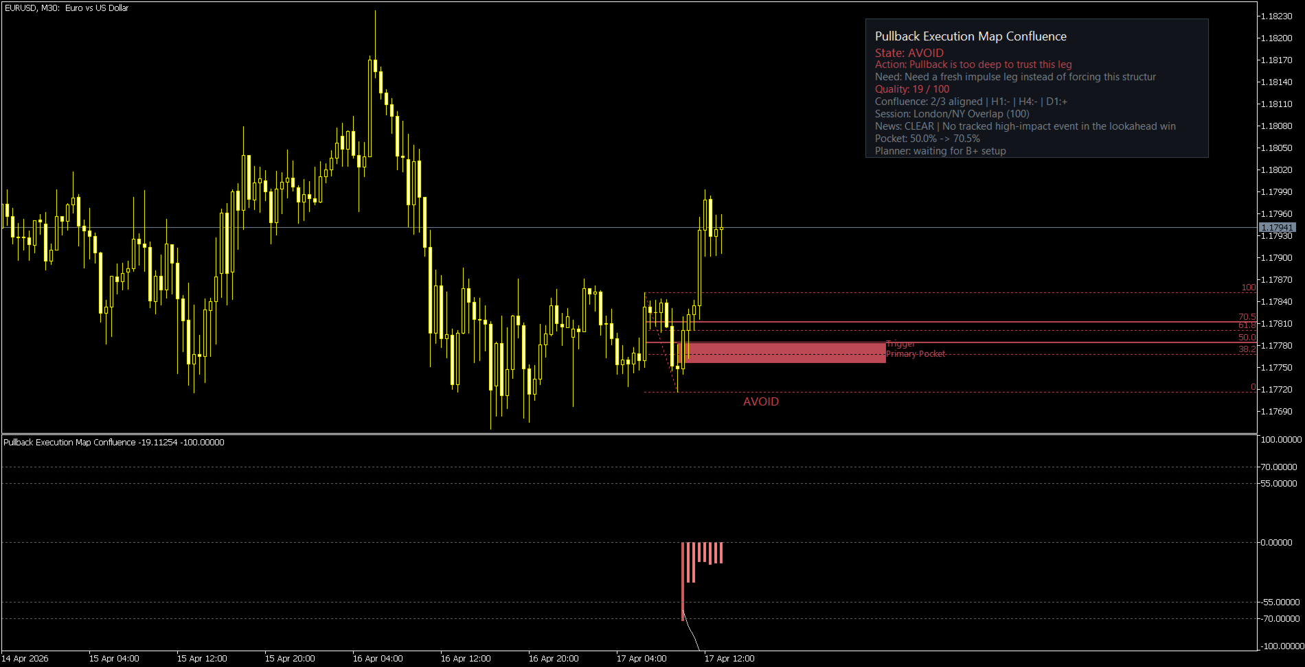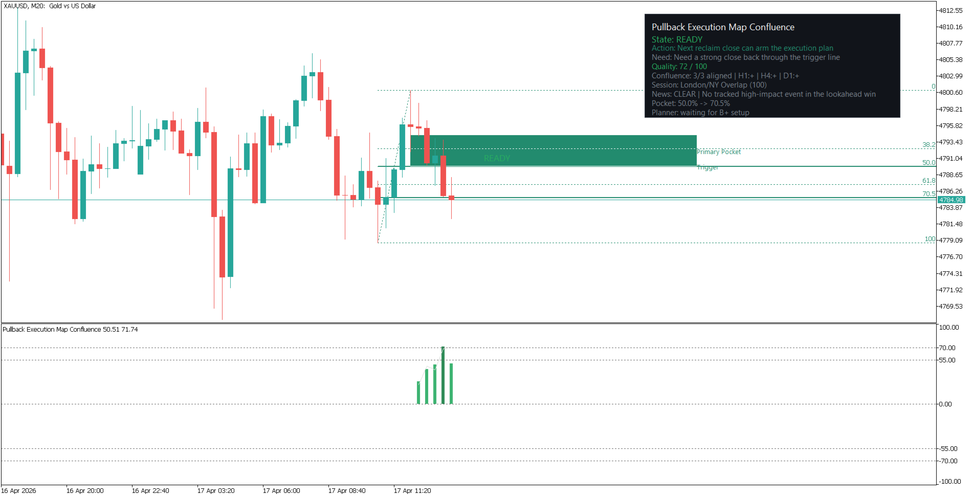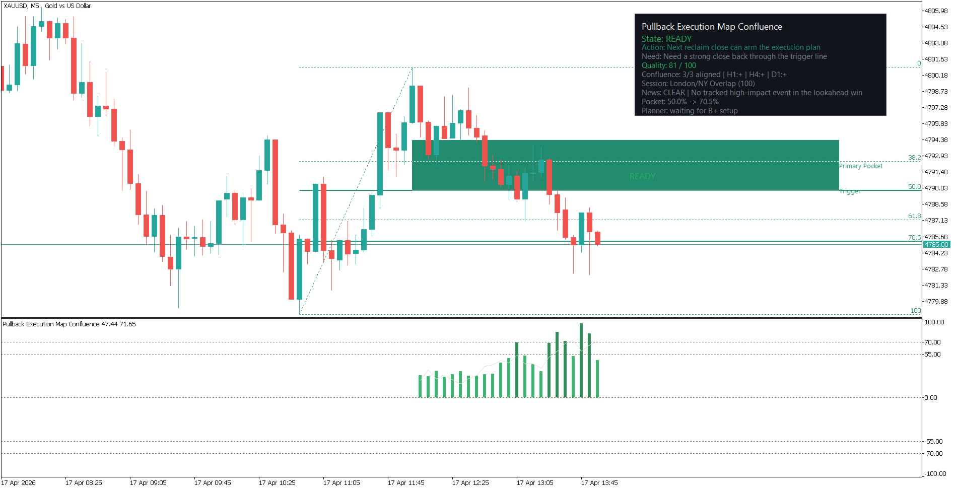 Pullback Execution Map Confluence ist die erweiterte Workflow-Version für Trader, die Alignment, Timing, Grading und Planerlogik in der gleichen übersichtlichen Oberfläche haben möchten.