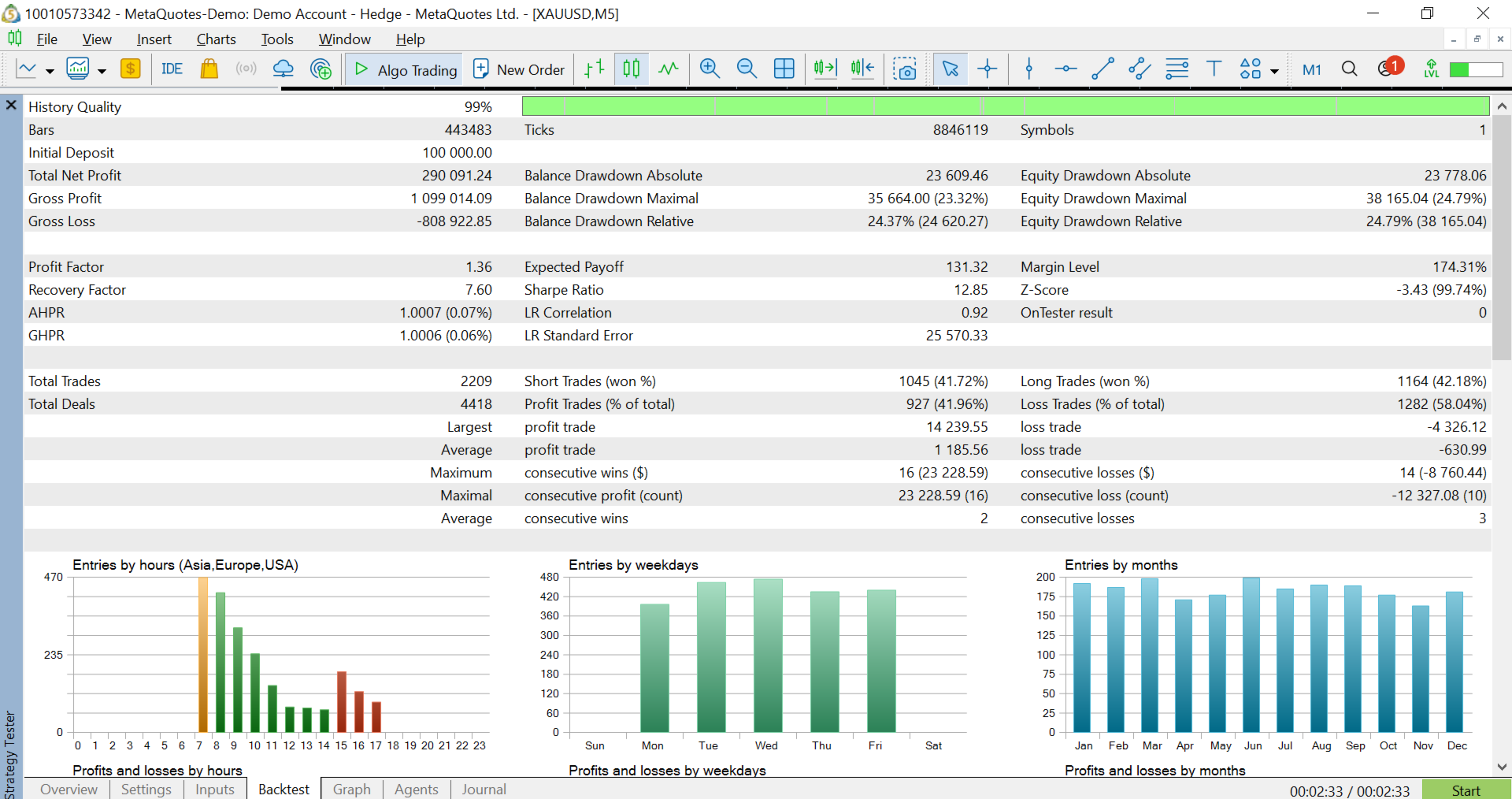 Hierfür haben wir Path Signature verwendet, das auf dem von Terry Lyons entwickelten fortschrittlichen mathematischen Rahmen basiert. Dies ist ein komplexer mathematischer Ansatz, und wir haben den EA ausgiebig mit historischen Daten trainiert, damit er entscheiden kann, ob er einen Handel eingehen oder vermeiden soll.