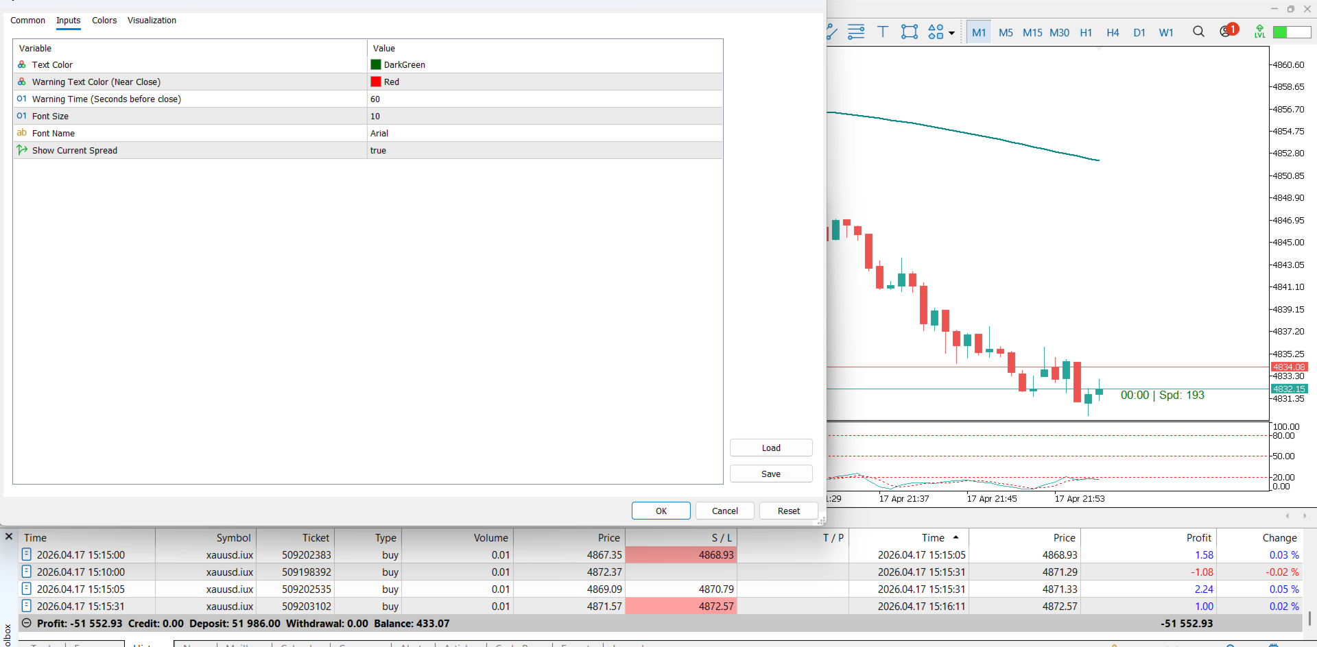 All-in-One-Anzeige: Zeigen Sie optional den Echtzeit-Spread direkt neben dem Timer an, so dass Sie keine zusätzlichen Indikatoren installieren müssen.