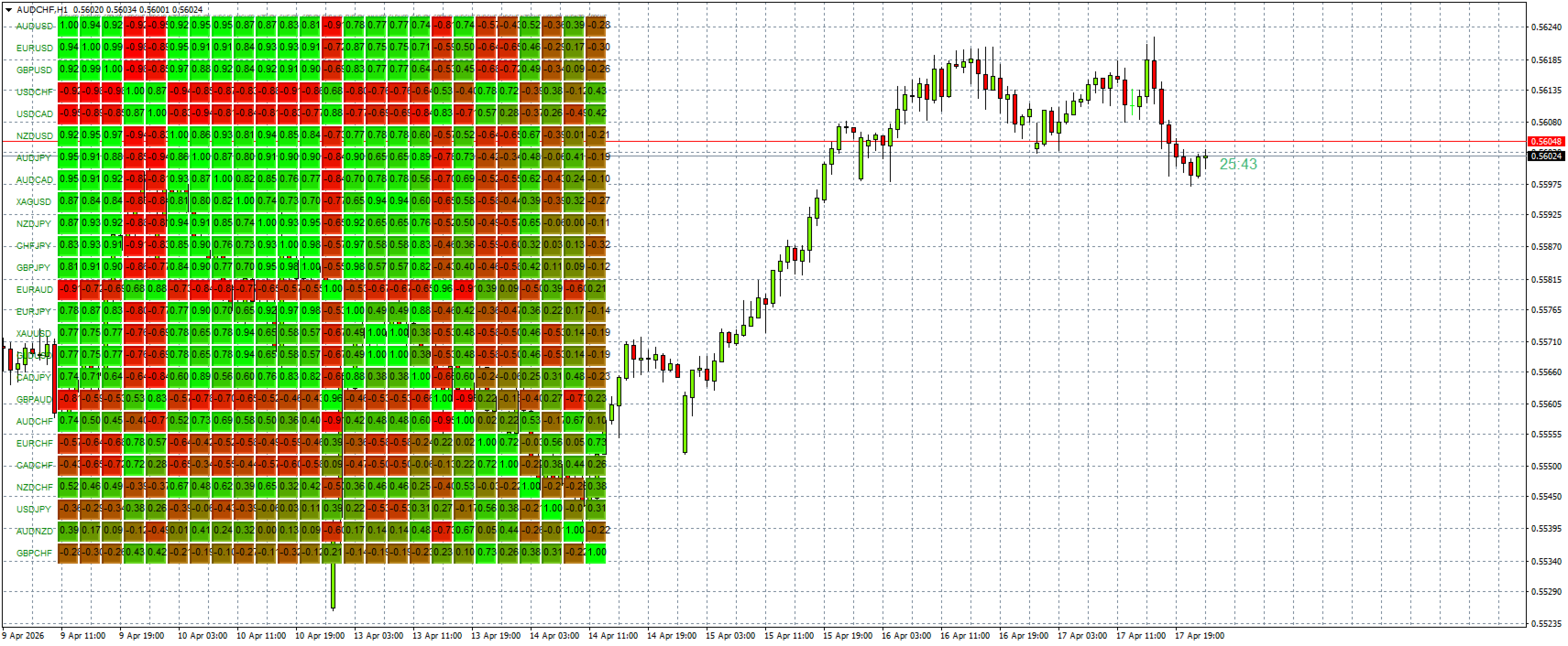 Forex Correlation Matrix MT4 ist ein leichtgewichtiges und hochoptimiertes Tool, das die Korrelation zwischen den wichtigsten Währungspaaren in Echtzeit berechnet.