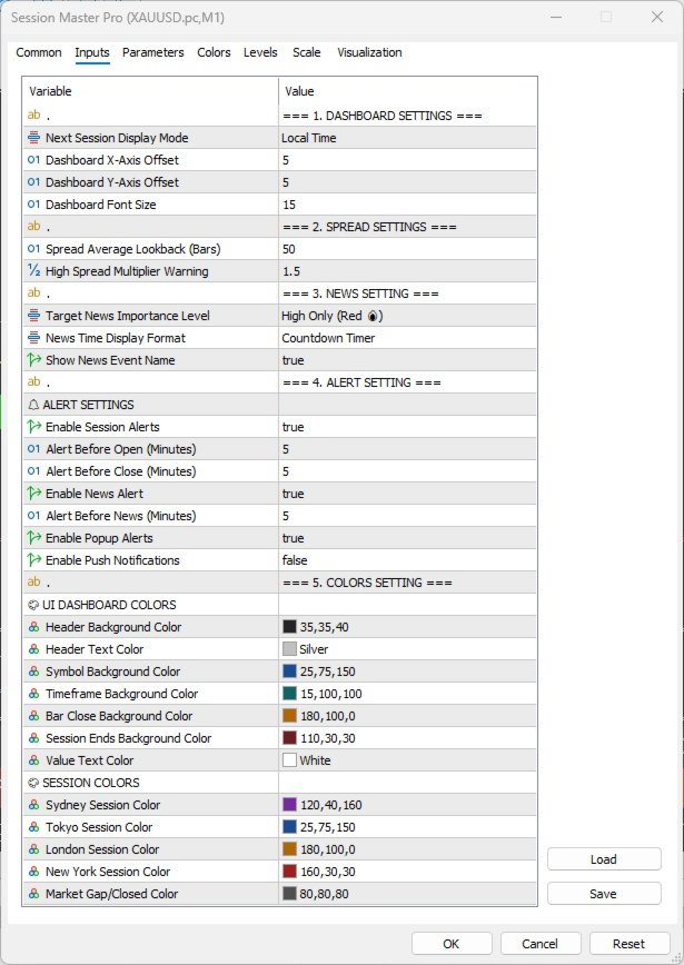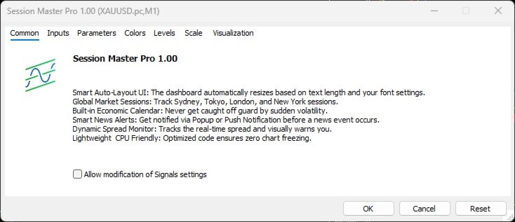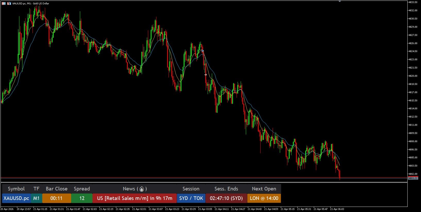 Überblick: Session Master Pro ist ein leichtgewichtiges, hochoptimiertes On-Chart-Dashboard, das für ernsthafte Trader entwickelt wurde. Es beseitigt die Unübersichtlichkeit von Charts, indem es globale Marktsitzungen, hochaktuelle Nachrichten-Countdowns und die Überwachung von Spreads in Echtzeit in einem schlanken, sich automatisch vergrößernden Panel vereint. Es wurde mit Blick auf die Leistung entwickelt und verwendet eine Zero-Lag-Auto-Layout-Engine, die garantiert, dass Ihre Charts 100 % flüssig bleiben, ohne dass die CPU überlastet wird.