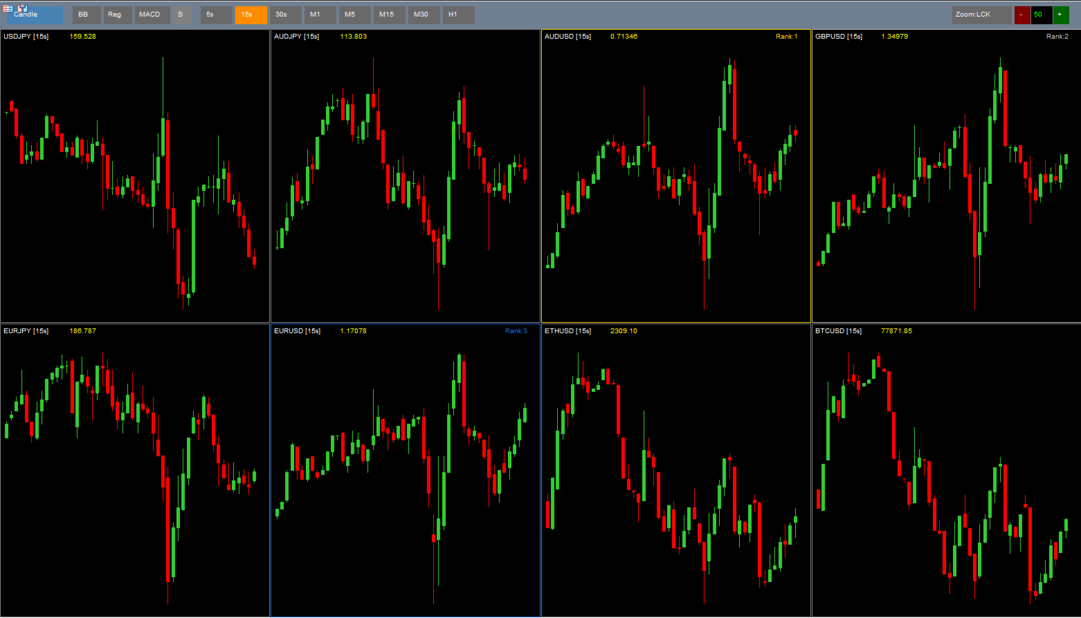 Überwachen Sie bis zu 8 Symbole gleichzeitig in sekundenbasierten Charts