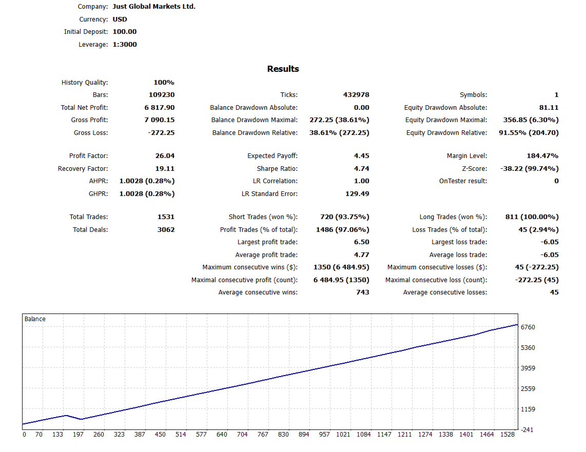 Die Ergebnisse zeigen, dass der EA in der Lage ist, strukturierte Forex-Bewegungen zu erfassen und dabei einen kontrollierten Drawdown aufrechtzuerhalten.