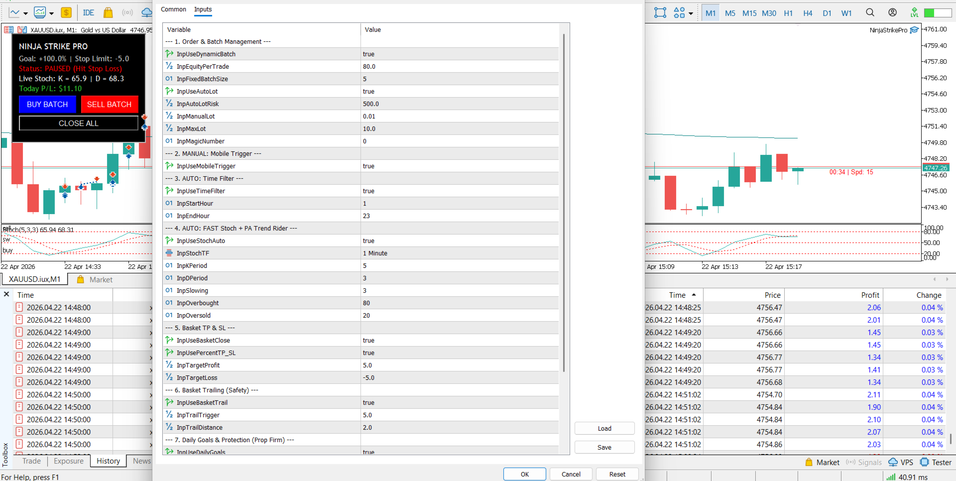 Ninja Strike Pro v4.21 ist ein fortschrittlicher Hybrid Expert Advisor, der Momentum-basierte Hochfrequenz-Einträge kombiniert mit institutionellem Risikomanagement nutzt. Hier ist eine schrittweise Aufschlüsselung, wie das System funktioniert: