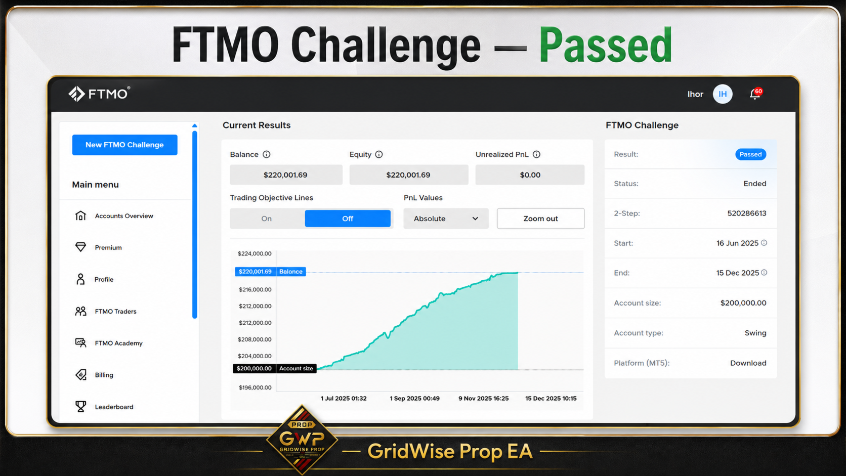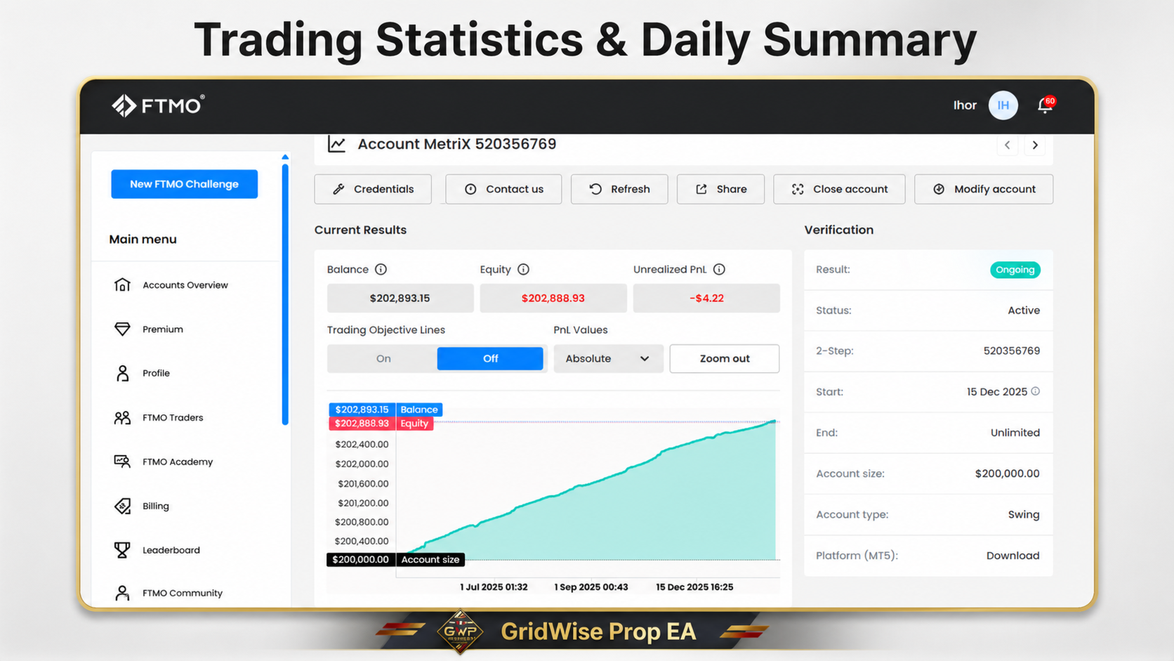 GridWise Prop EA wird vom Autor im realen Handel eingesetzt, einschließlich eines öffentlichen MQL5-Signals und Tests in Prop Challenges.