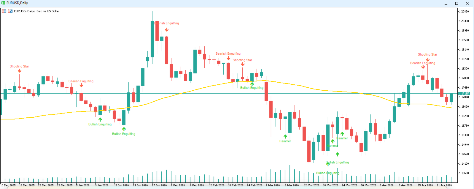 Höhere Zeitrahmen wie H1, H4 und D1 liefern in der Regel klarere Candlestick-Signale. Bei niedrigeren Zeitrahmen wird empfohlen, den gleitenden Durchschnittsfilter zu verwenden, um das Marktrauschen zu reduzieren.