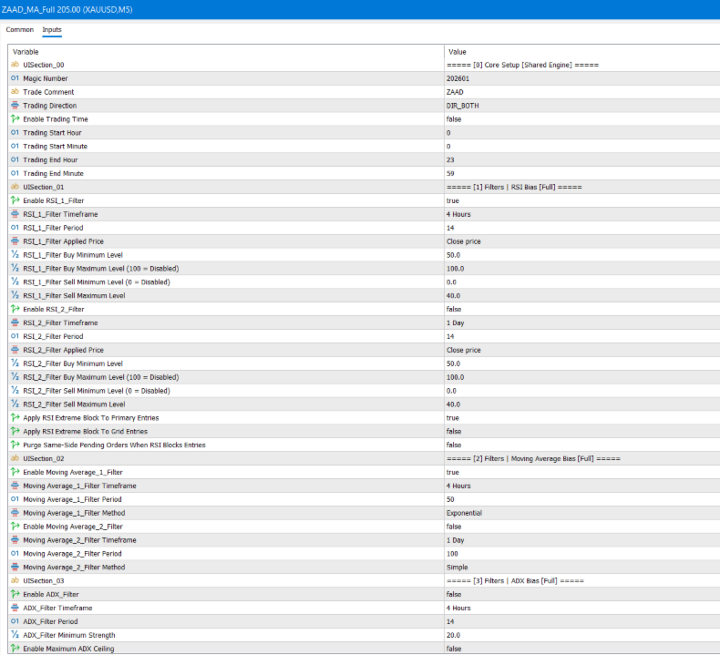 Im Kern ist die Idee einfach. Ein gleitender Durchschnitt glättet den Kurs über eine bestimmte Anzahl von Kerzen. Durch diese Glättung wird ein Teil des kurzfristigen Rauschens beseitigt und ein klareres Bild des vorherrschenden Marktverlaufs vermittelt. Wenn der Kurs über dem gleitenden Durchschnitt liegt, deutet dies häufig auf eine Aufwärtsbewegung hin. Liegt der Kurs unter dem gleitenden Durchschnitt, deutet dies häufig auf eine abwärts gerichtete Stärke hin. Aber innerhalb von ZAAD ist die Strategie des gleitenden Durchschnitts noch nützlicher, weil sie nicht allein funktioniert. Sie arbeitet innerhalb eines größeren Rahmens, der Ausführungsmodi, eine Logik für ausstehende Aufträge, eine Rastererweiterung, Schutzsysteme, eine Logik für die Losgröße und optionale Filter wie ADX und Stochastic umfasst. Das bedeutet, dass es bei der Strategie nicht nur darum geht, die Richtung zu erkennen, sondern auch zu entscheiden, wie der Handel platziert werden soll, wie sich zusätzliche Eingänge später verhalten und wie das Risiko kontrolliert bleibt, wenn sich die Marktbedingungen ändern.