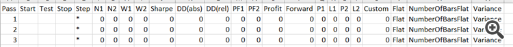 where Sharpe is the Sharpe ratio, PF - profit factor, Ntrades - number of trades, Profit - netto profit;