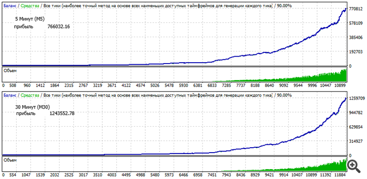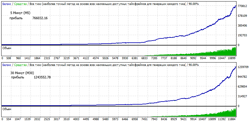 На M30 с настройками по умолчанию результаты выше, чем на рекомендуемом М5 и сделок больше, хотя по логике должно быть наоборот, можете как-то прокомментировать?