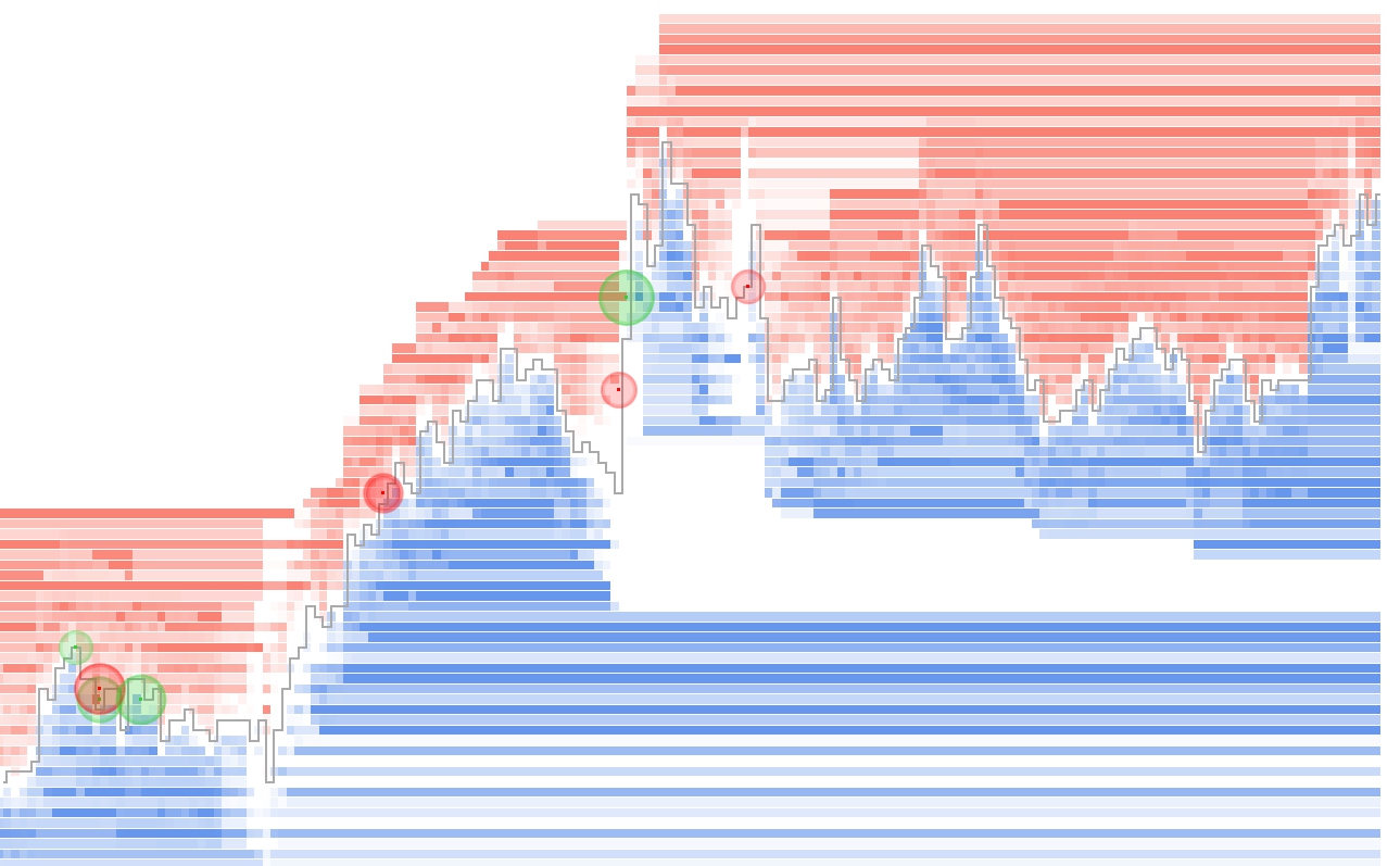 It would also be very interesting see the large orders drawn on the chart. In the example, they are green and red circles.