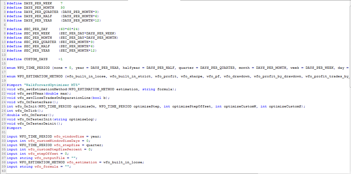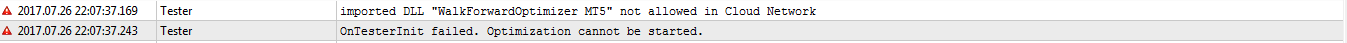 The only thing i changed was the name of the file that is imported (line 20) because that's the name it came from donwloading. The "WalkForwardOptimizer MT5" file i had to copy and paste into MQL5>Libraries, because originally it was downloaded into MQL5>Include>Market