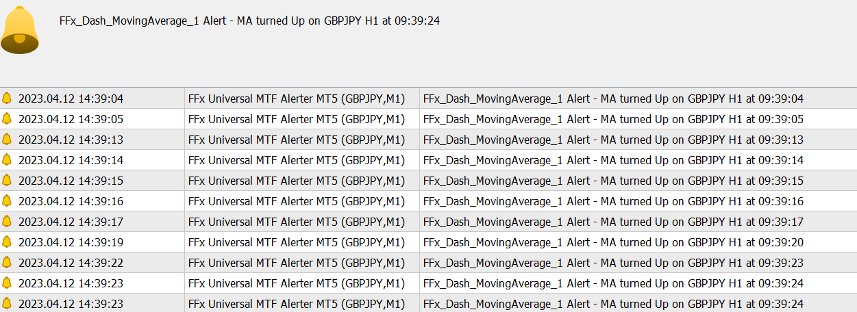Dear Author just bought found a bug problem issue see above pic, when I load to GJ single alert H1, using Moving Average period 2, it keep sending alert non-stop can you check and fix the bug? Thank you.