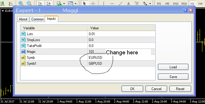 Open the active chart H1 for traded instruments: EURUSD, GBPUSD.