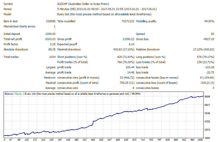 For an example, try backtesting on other tools: EURCHF, GBPUSD, CADCHF, CHFJPY, EURCAD, GBPCHF, GBPCAD, GBPAUD