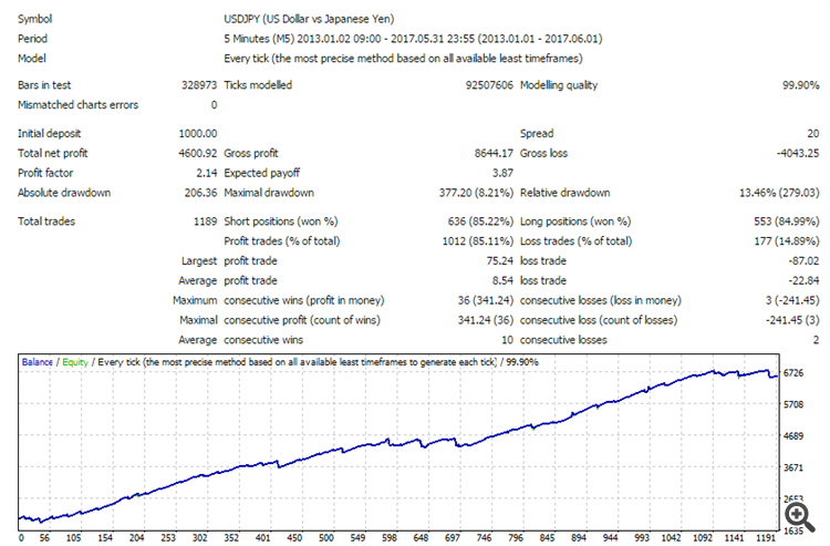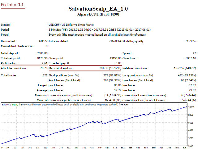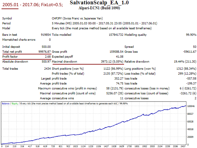 Here is the EURCHF M1 backtest report. I still don't recommend the EA for live trading since the RR ratio is 17:1 when it should be no more than 2.5:1. I recommend to rewrite the logic of the EA (and a preset update) to accommodate for a much smaller SL that will not destroy the account balance when hit. In this case the SL should not lose more than 0.84 (avg win) x 2.5 = $2.10 MAX and not $14.12!