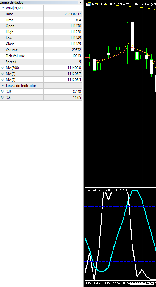 this indicator is not working properly for me: it's producing different results depending where I load it. For example, I have it attached to a chart of WIN$N (B3 mini-index) and at the bar 10:04 of 17-02-2023 the %D is producing 87.48, but an EA with the indicator loaded with the same parameters (the default 18,8,5) is showing 54.54