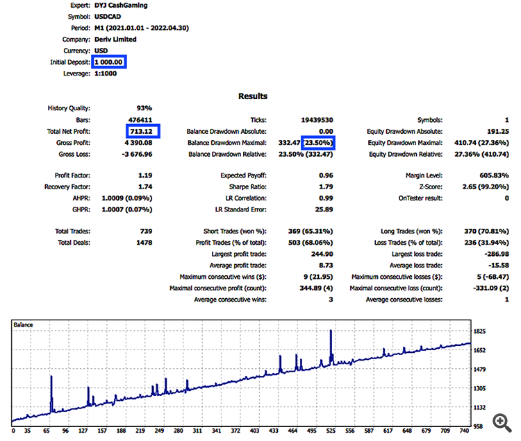 USDCAD $1000 DD=23% $713.set
