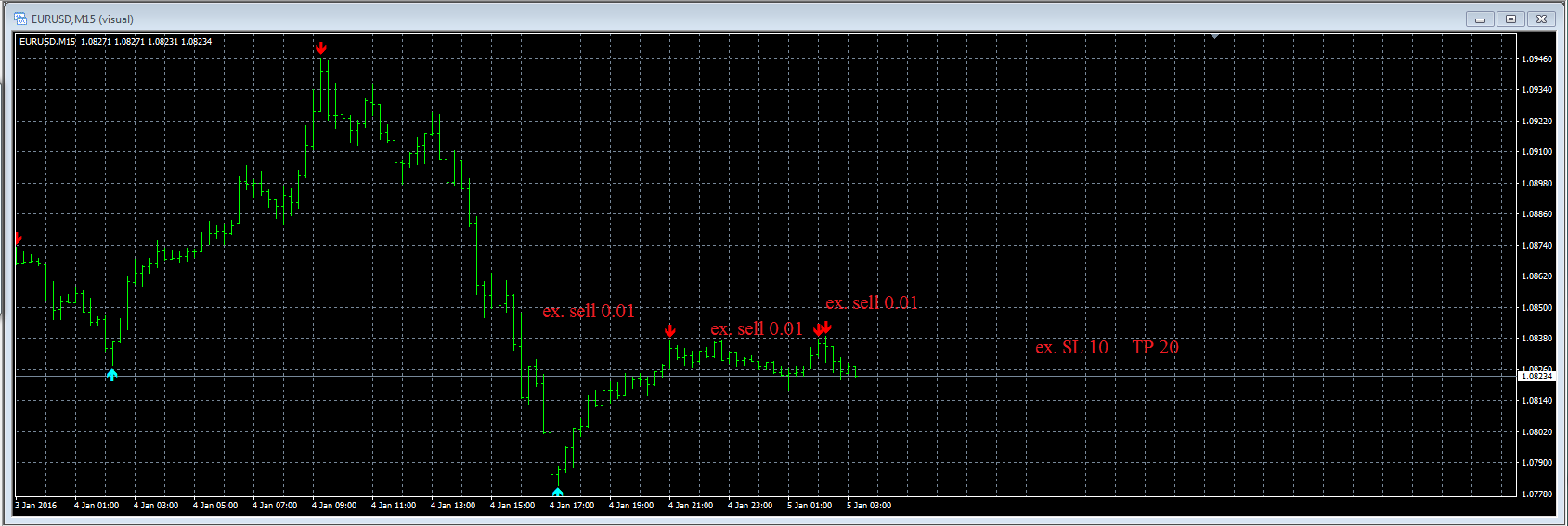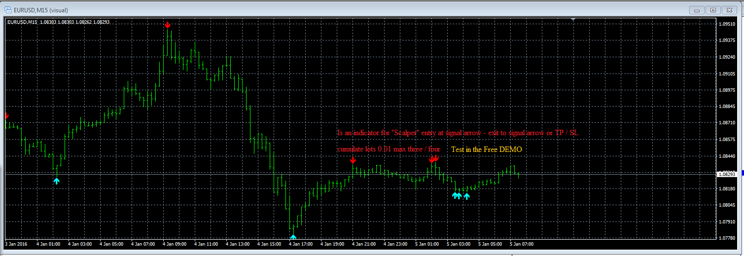 the indicator has only one modifiable parameter "the gap", this is a value that multiplies the internal (High/Low) non-modifiable values that control the trend and the volume. The recommended value is 11 or 12 or 13 or 14 (14 = fewer arrows, higher numbers are automatically converted to 14, numbers lower than 11 are automatically converted to 11), it can work on all times but it is recommended to use it with M5 or M15. It is not possible to optimize it automatically (by tester) but it is possible to do it manually by practicing demo accounts. The indicator must be combined with a panel for orders (free in the MQ5 market) to use it as "Price Action Trading", Buy / Sell lots 0.01 every arrow that appears.