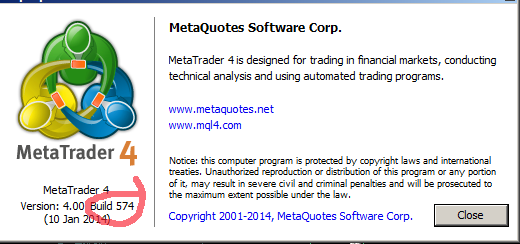 Версия Metatrader должна быть не ниже 555