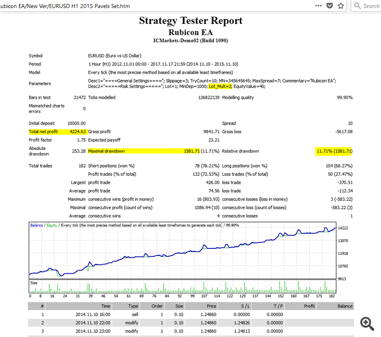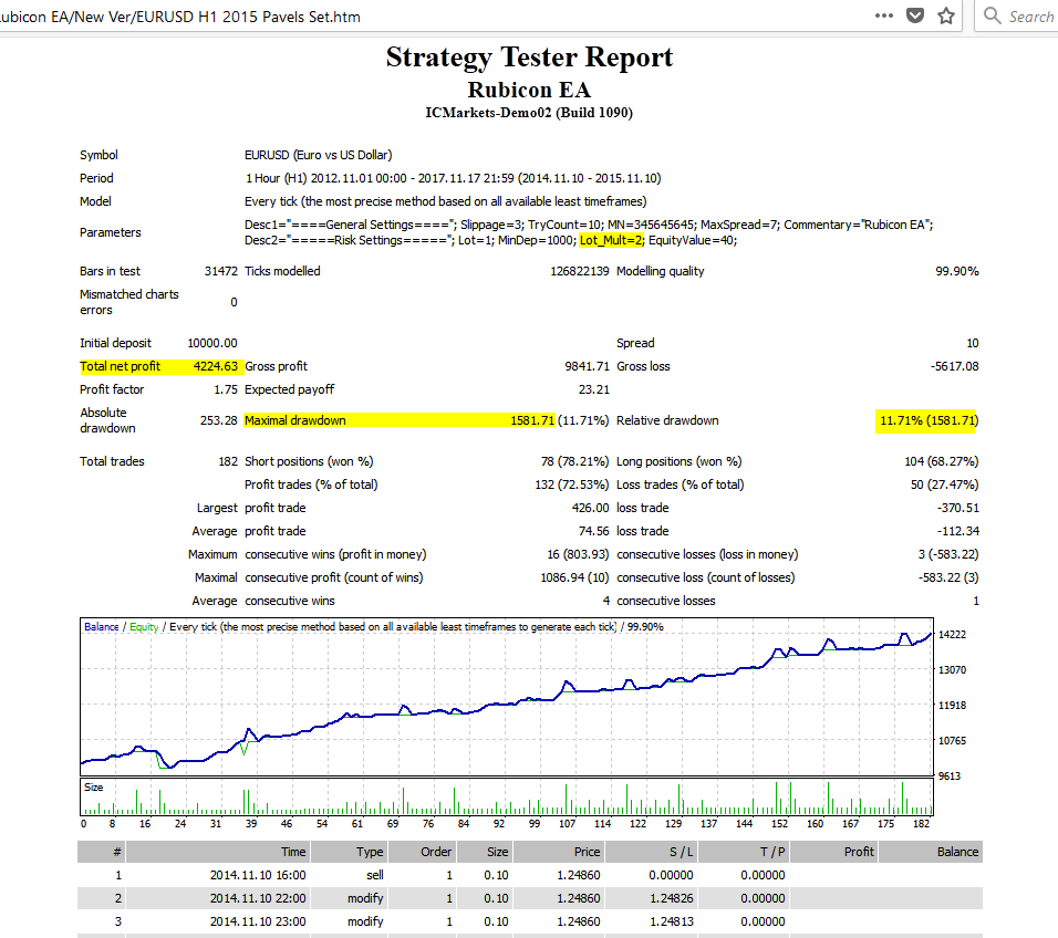 Yes, I ran the test again for the same period using your set file, the main difference being "addorderclose" must be "ON" which makes the EA close open orders when there is a change in trend direction. This option works a lot better - it takes the losses when they should be taken and reduces the scary martingale, with less potential for a crash. A much better result.