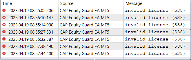 hi sir.. i downloaded your CAP equity Protector.. when i install it on mt5... it says invalid license 538...thank u..