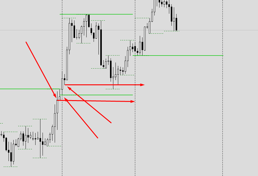 The weekly open price in dark orange color is shown at the start of the Monday session.