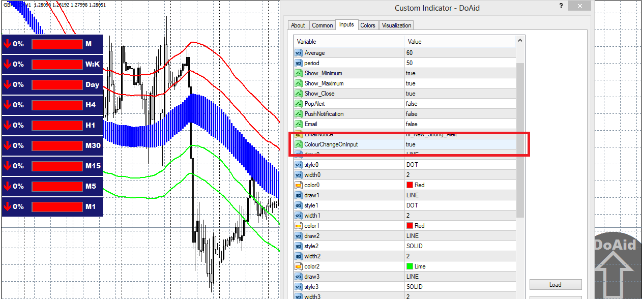 The latest update with DoAid automatically change the chart property for modifying chart, to show on foreground on mt4 terminal