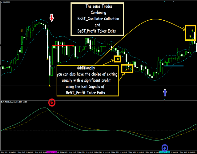 Feel free to try many parameters’ sets for Entry / Exit but I have found that the default parameters of BeST Oscillators' Collection ussually make the job very good.