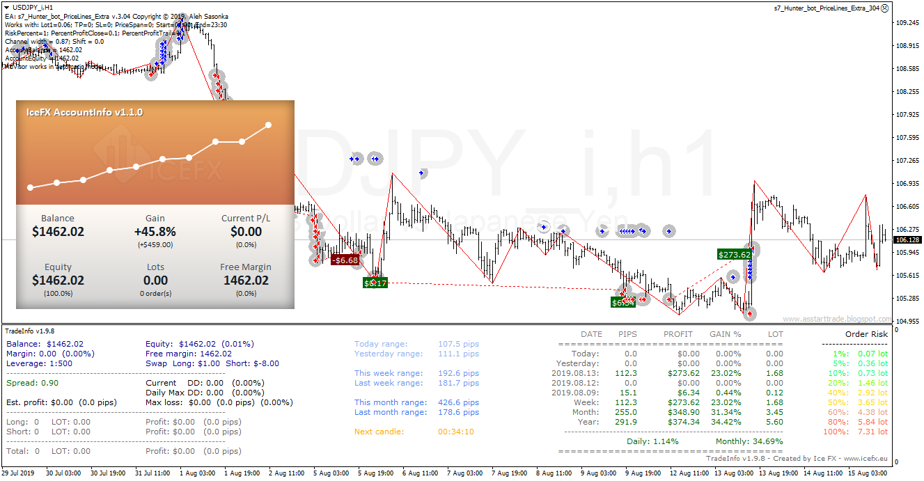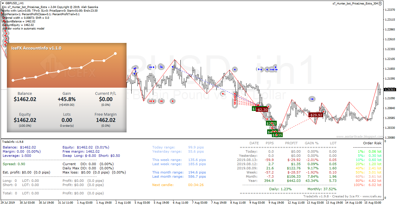 Hunter_bot_PriceLines_Extra advisor test result of the new version v3.04 on a demo account +45% per month.