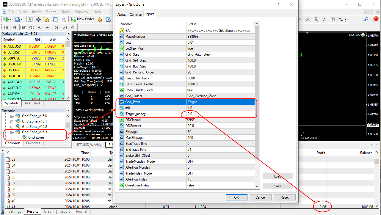 And if you choose Target and set Target_money, it means the profit amount must be greater than Target_money to close the profit