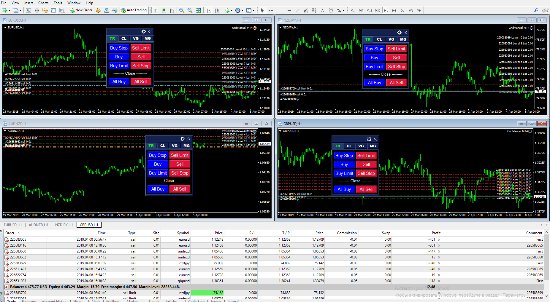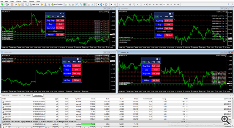Когда вы переходите во вкладку MG для настройки сетки, панель ждет завершения настроек и сигналом для возобновления торговли будет выход из закладки MG.