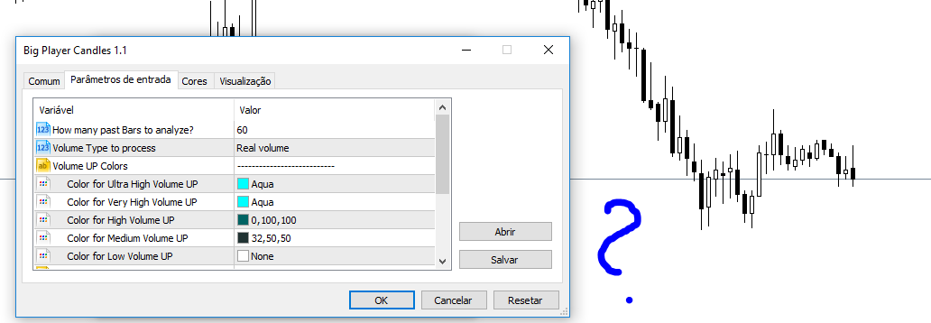 Porém, os candles continuam com a cor original do gráfico comum, como se nada tivesse acontecido. Tentei colocar grafico de linha e instalar o indicador novamente, coloquei o grafico em primeiro plano, com grade e sem grade e nada funciona. Se der para me ajudar ficarei imensamente agradecido! Obrigado