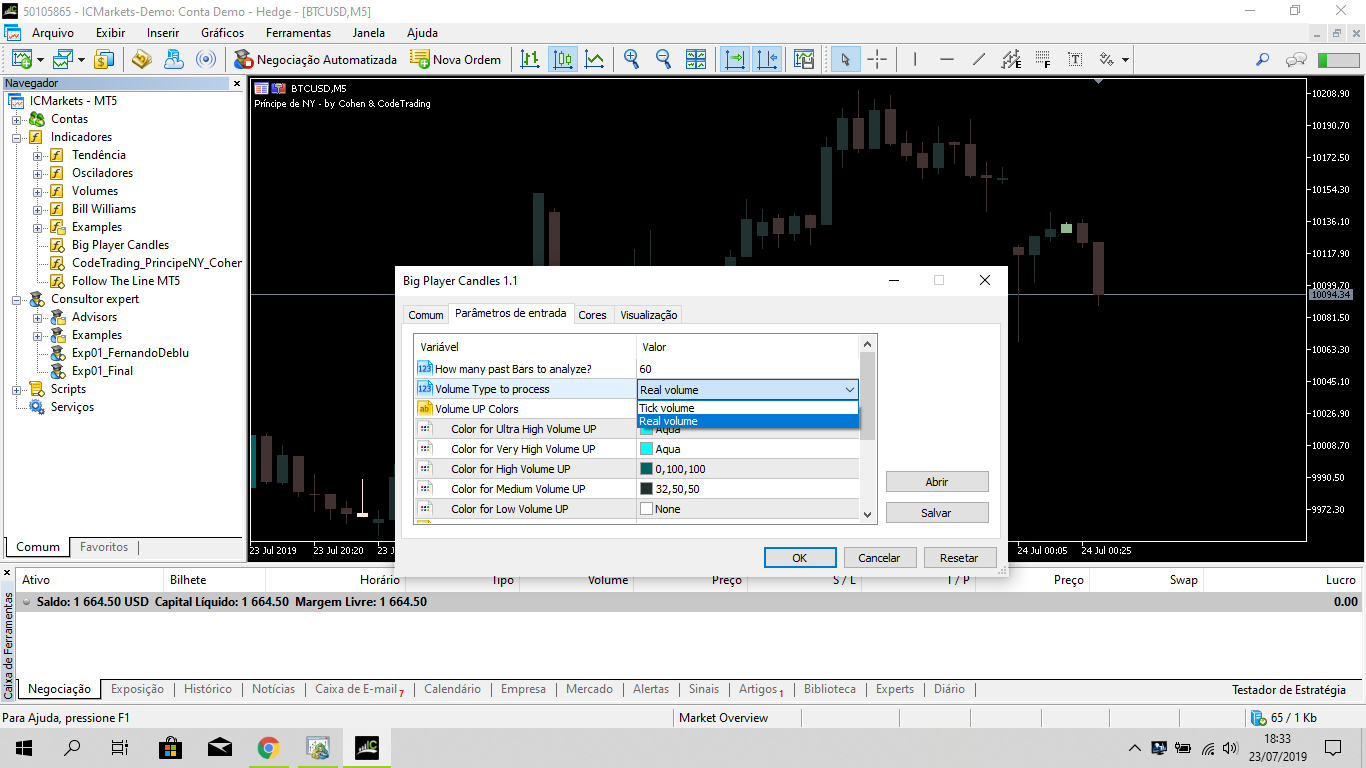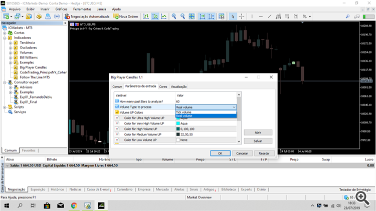 Pra quem esta com problema de executa-lo no forex, é so alterar de tick volume para Real volume que vai funcionar. Grande trabalho amigo, obrigado por compartilha-lo conosco gratuitamente, Deus abençoe. Abraços.