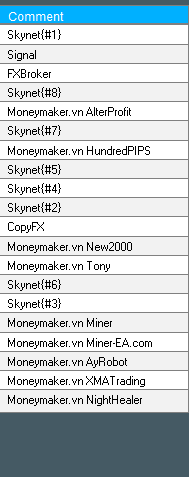 I copied the first column of the window. The problem is that only 20 rows (EAs/signals) will be displayed, also when I don' use them anymore. But the ones I use now will not be displayed. This could be prevented when the date of the displayed history could be filtered. It also would help to filterer with a place marker like ? or *.
