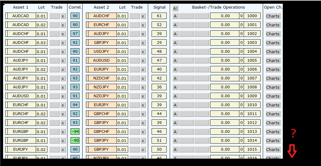 You can press the "A!" Button to enable automatic trading for all correlation pairs. I do not want to include an automatic activation, because for some brokers, incorrect calculations of the correlation disbalance can occur for a short time. Then wrong trades would be opened. In addition, at the moment I do not recommend fully automatic trading - you must intervene manually sometimes, please.